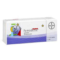 Femodette oral contraceptive pills are available to order online at OnlineClinic in the recommended dose of 75mcg / 20mcg. Femodette can be ordered from us in packs of 63 or 126 pills. Inconvenient and unnecessary face-to-face doctor's appointments can be avoided by purchasing your medication online at OnlineClinic. Femodette contraceptive pills successfully preventing pregnancy when used correctly and can also improve the appearance of your skin, reduce excess body hair and lighten periods. Additional packs of Femodette tablets can be ordered online via our quick repeat ordering process. A reminder service will prompt you to buy additional tablets when they're required.