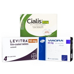 At OnlineClinic, we stock Viagra, Cialis, Sildenafil and Levitra as well as newer medication Spedra and an Impotence Trial Pack that includes four of the most popular treatments if you're unsure which is the right tablet for you. These prescription medications are taken orally in the form of a tablet and are widely regarded as the most popular and effective form of treatment for erectile dysfunction. These medications can be used for both short-term and long-term treatment with varying dosages and strengths available. When obtaining treatment online, a short consultation will give our doctors the essential information needed to issue the correct medication as well as dosage. The Impotence Trial Pack contains Viagra, Cialis and Levitra.